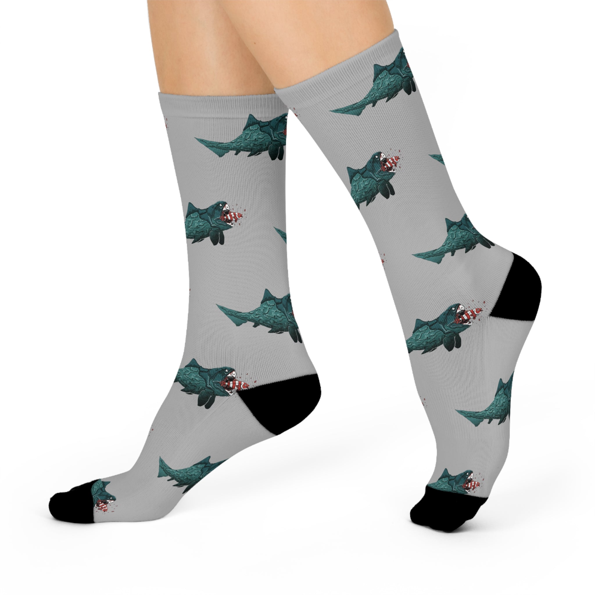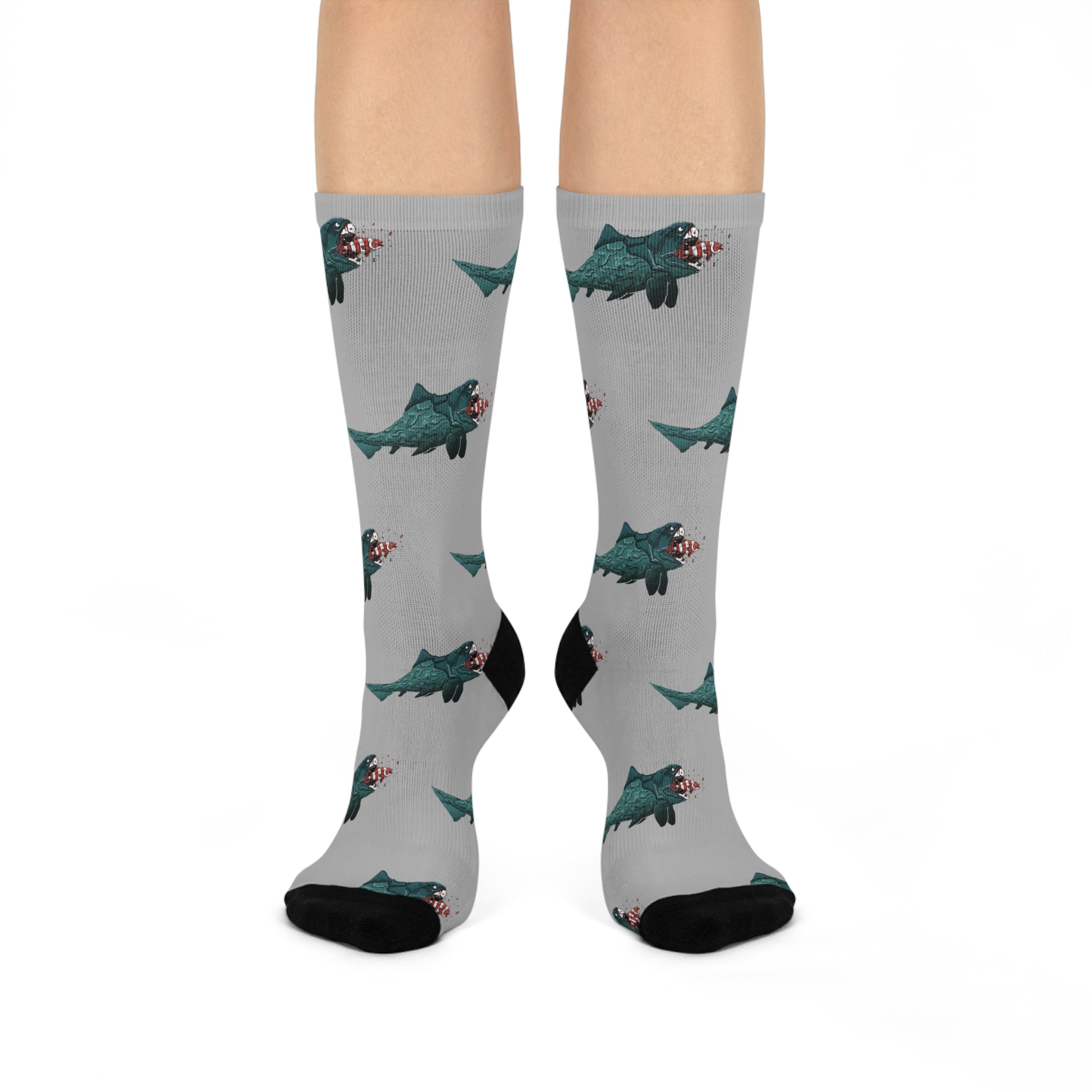 Shark Pattern Cushioned Crew Socks — Grey Novelty Sea Creature Socks